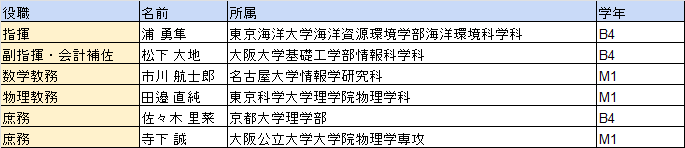 本合宿の運営は、第8回数物セミナーAdvanced実行委員会を中心に行います。